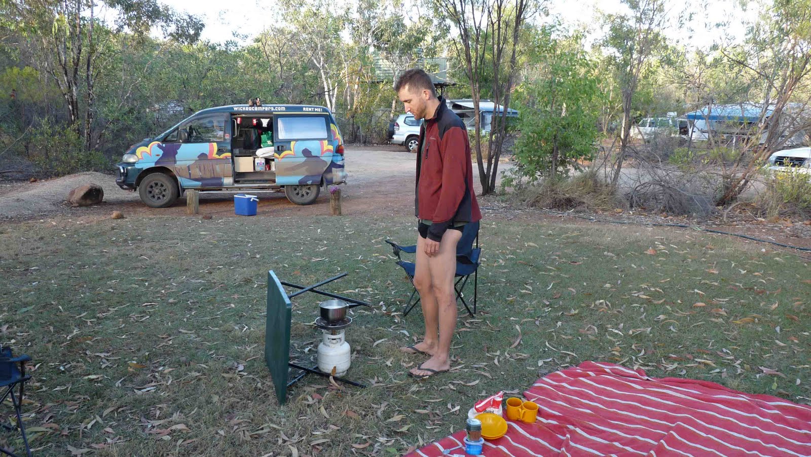 There was something of a post-apocalyptic feel to edith falls the following morning, as strange winds buffeted the camp ground, carrying off unsecured items of clothing and toppling the occasional small child. it calmed down enough for a breakfast of champions.
